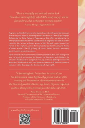 Pregnancy and childbirth are not to be feared; they are divinely appointed processes that can be joyful, spiritual, and bring families closer to God. The Gift of Giving Life: Rediscovering the Divine Nature of Pregnancy and Birth offers something that no other pregnancy book has before–a spiritual look at pregnancy and birth by and for LDS women and other women of faith. Through moving stories women in the scriptures, women from early Latter-day Saint history, and dozens of modern mothers, The Gift of Giving Life assures readers that God cares deeply about the entire procreative process.